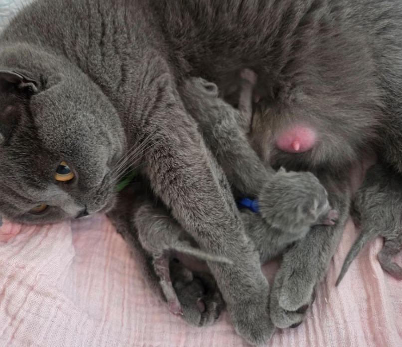 Op 6 december 2025 is Holly moeder geworden van 4 mooie blauwe kittens.